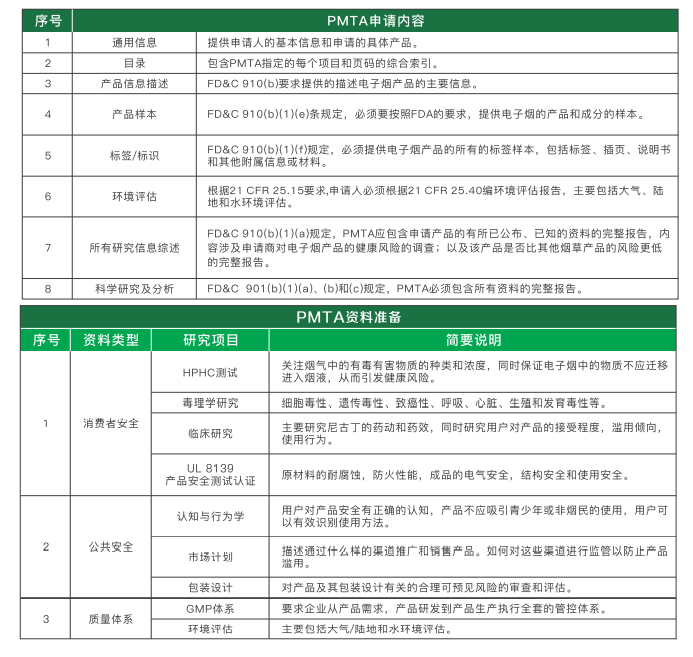 烟草产品必须得到FDA的授权才可以在美国合法销售,获得授权的方式即Premarket Tobacco Application,英文缩写 PMTA。